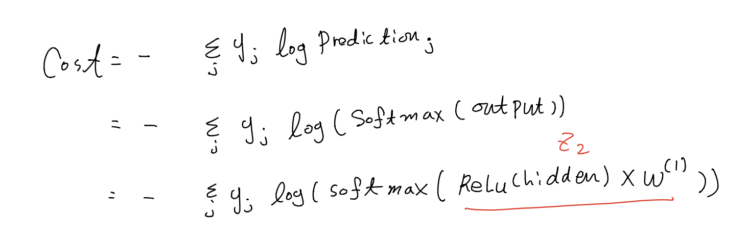 = cross_entropy(softmax(np.dot(ReLU(np.dot(Input_layer , W_0)) , W_1)), true_Label)